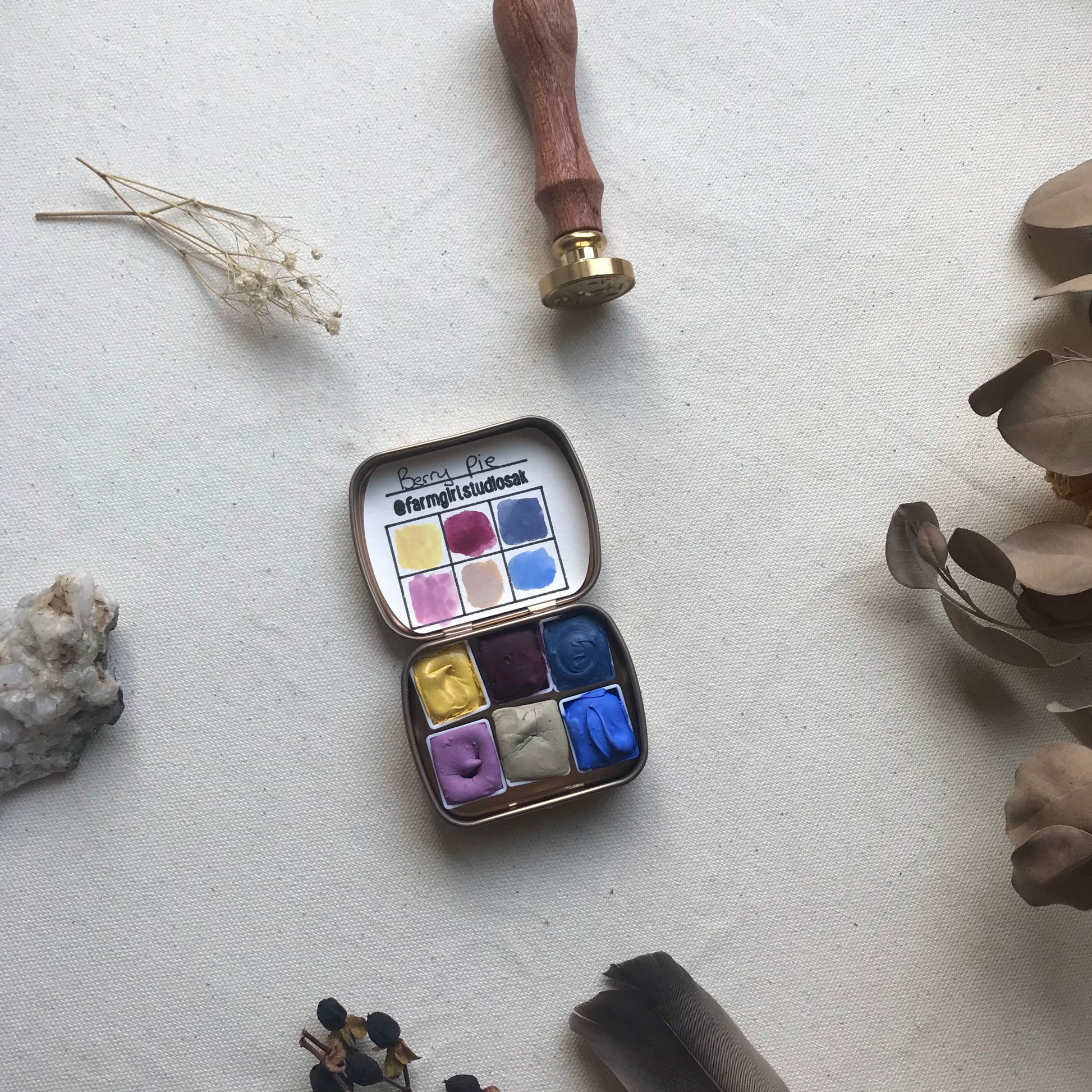 Each pan and tin is hand assembled. Humidity and temperature during transit can cause drying, cracking or stickiness. Simply wet a brush and mix in paints to create desired consistency. Store in a cool dry place.