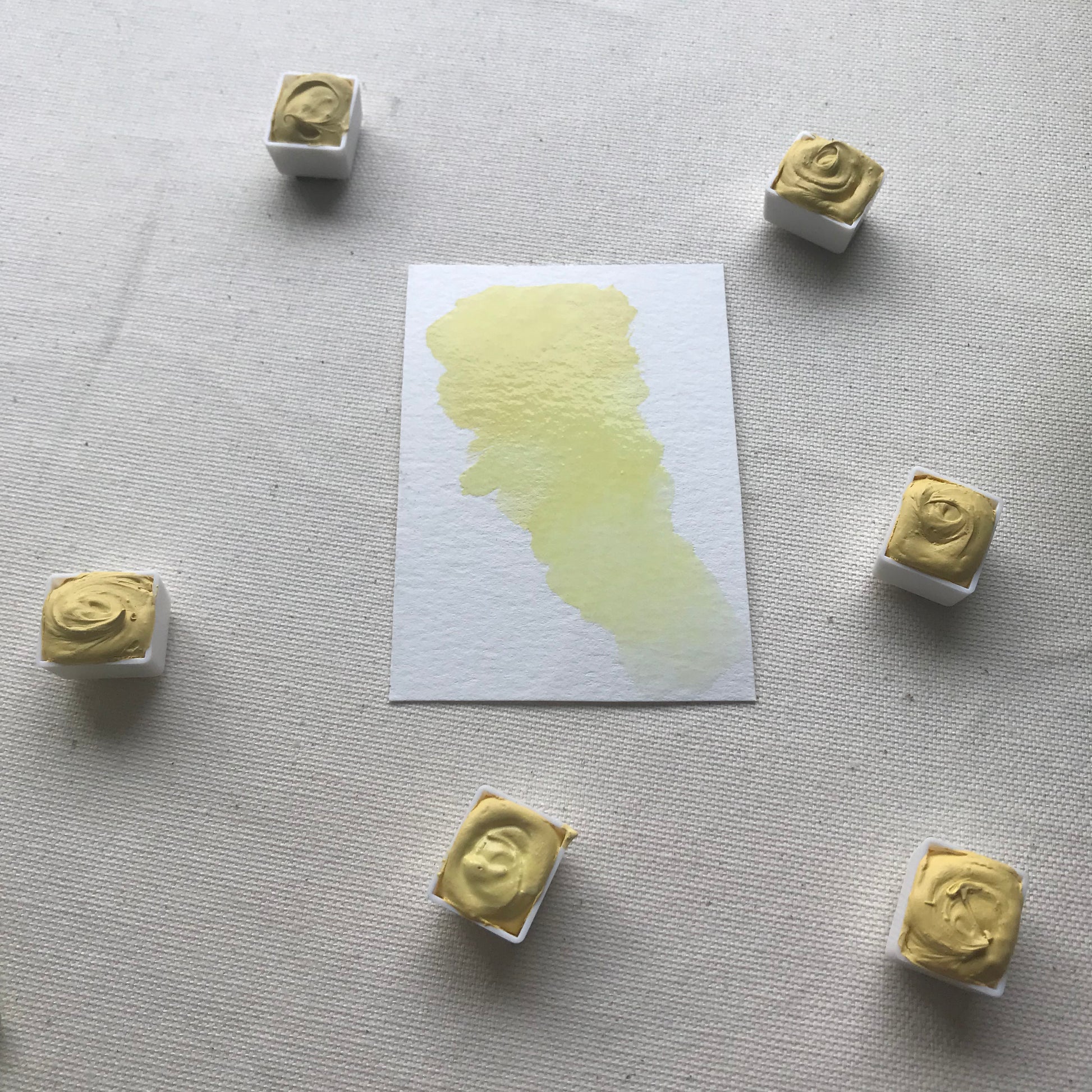 Handmade Sunshine Yellow watercolor paint. 1 single half pan.