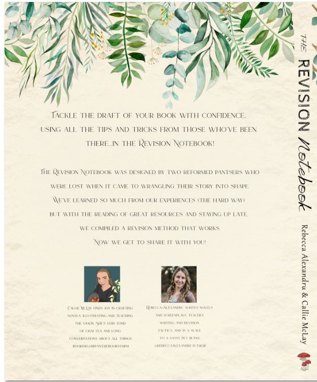 The Revision Notebook was designed by two reformed pantsers who were lost when it came to wrangling their story into shape. We’ve learned so much from our experiences (the hard way) but with the reading of great resources and staying up late, we compiled a revision method that works. Now we get to share it with you!