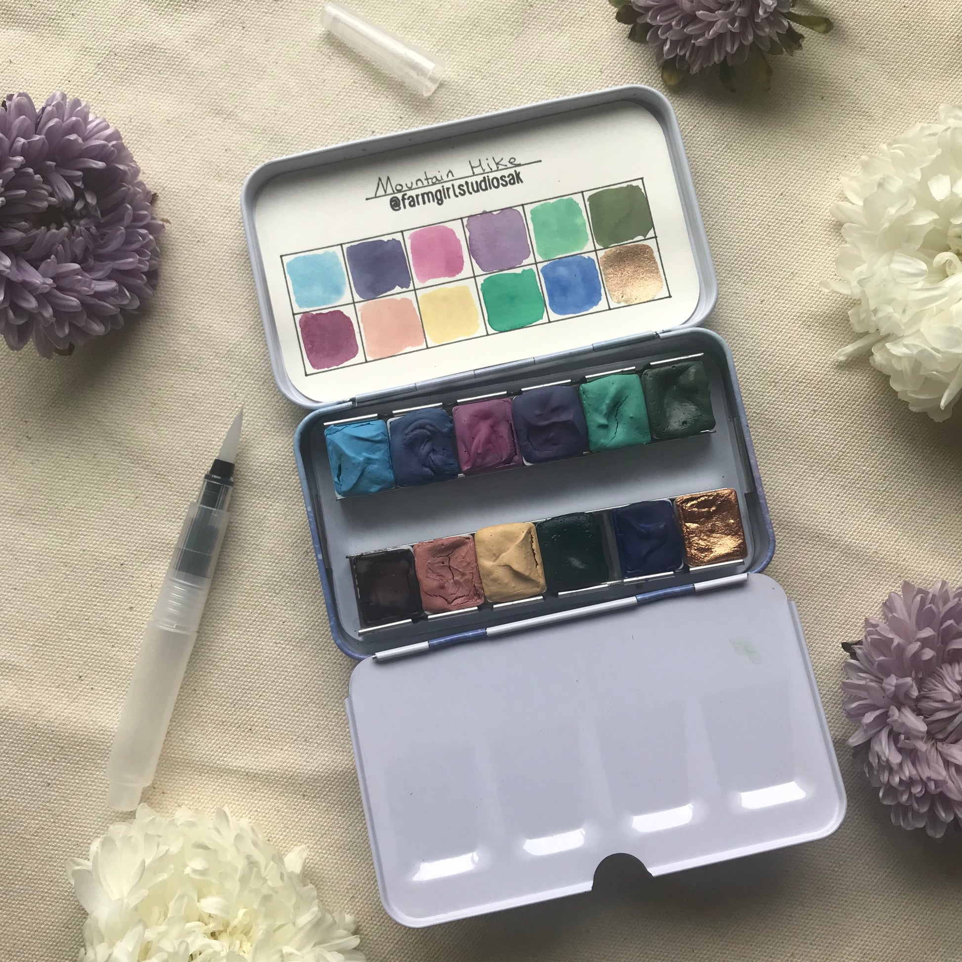 Each pan and tin is hand assembled. Humidity and temperature during transit can cause drying, cracking or stickiness. Simply wet a brush and mix in paints to create desired consistency. Store in a cool dry place.